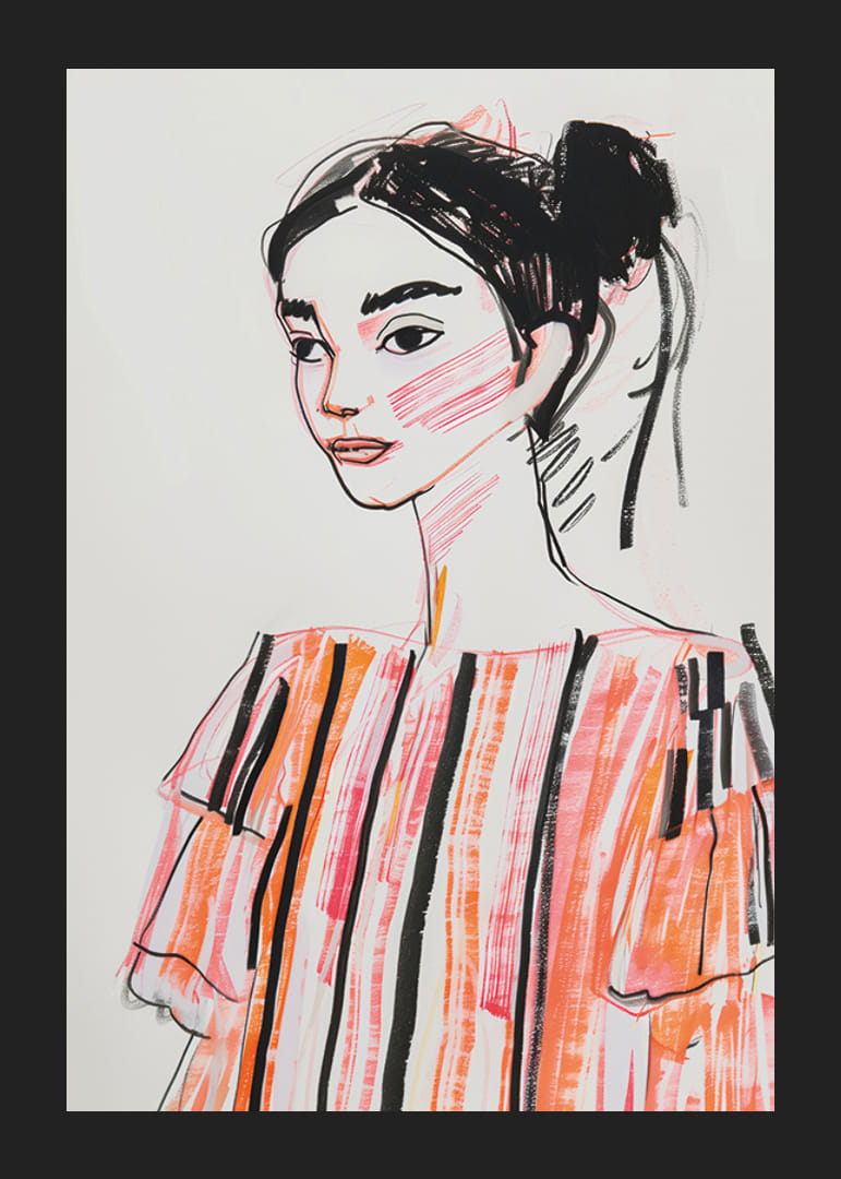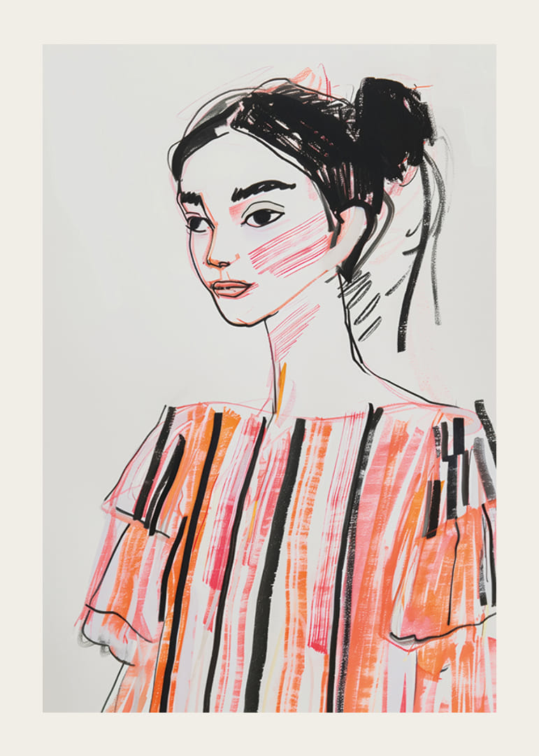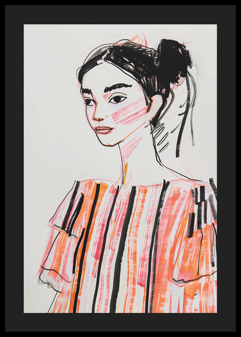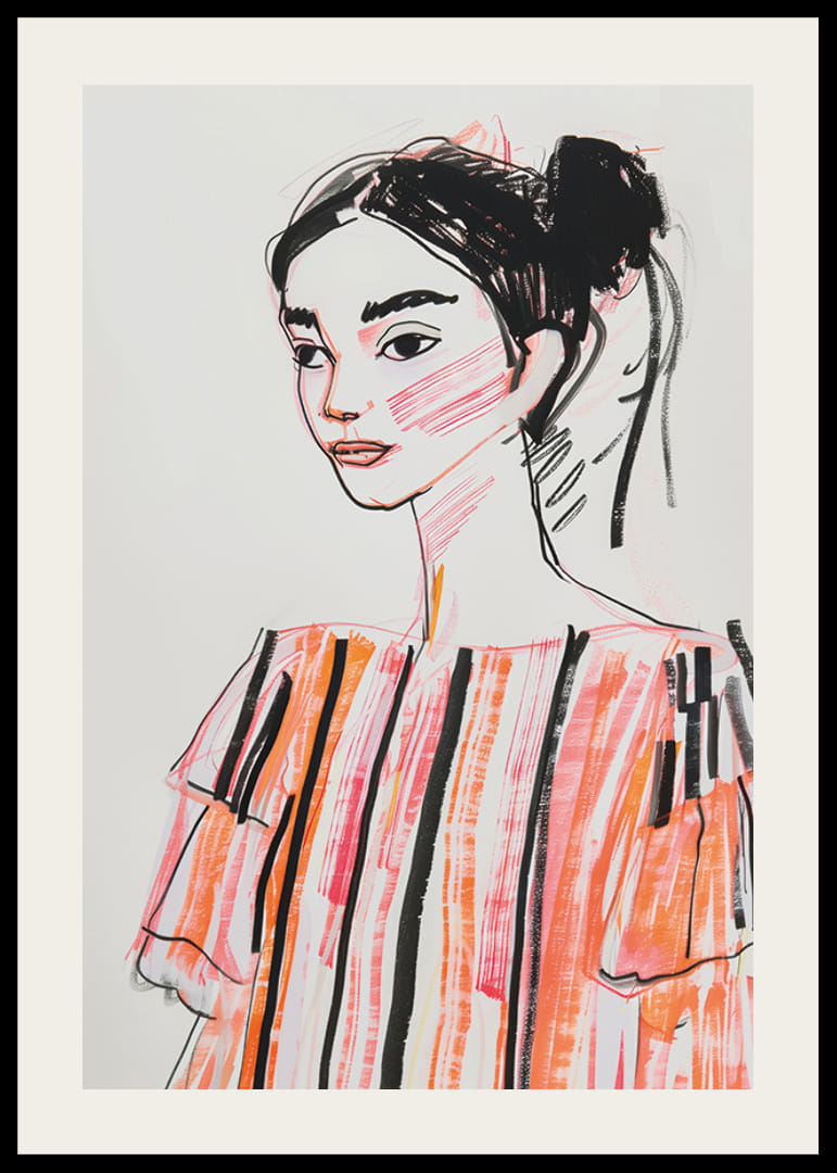 Tento plagát upúta pozornosť svojim elegantným obrysom a hravou farebnou paletou, ktorá zvýrazňuje nadčasovú krásu. Jemné ťahy štetcom a výrazné línie vytvárajú harmóniu, ktorá oživuje nehybnosť objektu.