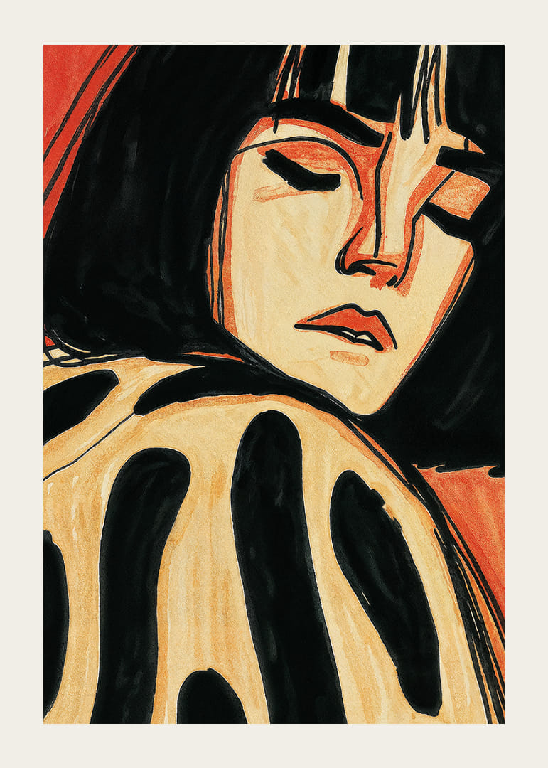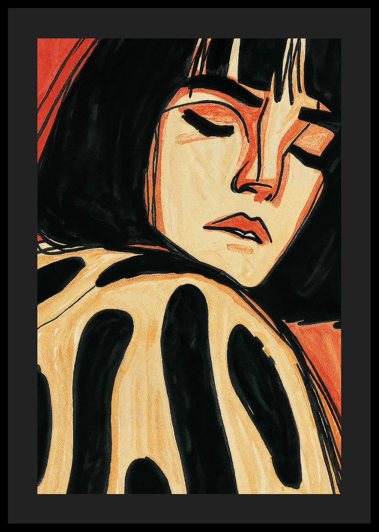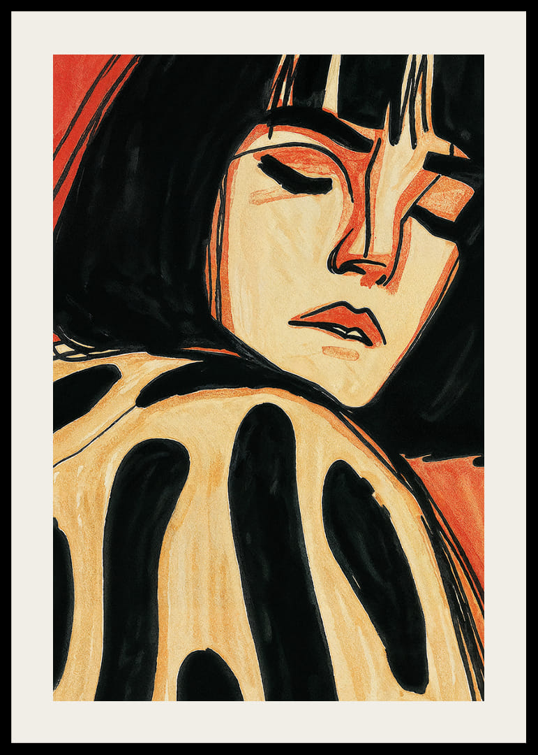 Tento krásny plagát zachytáva snovú scénu ženy odpočívajúcej so zatvorenými očami na pozadí teplých, zemitých tónov. Jemné kontrasty čiernej a hrdzavej farby vytvárajú hypnotický pocit pokoja a introspekcie. Plagát vyžaruje tichú a meditatívnu atmosféru, ktorá premení každú miestnosť na oázu pokoja a reflexie, ideálnu na spríjemnenie každodenných chvíľ pokoja.