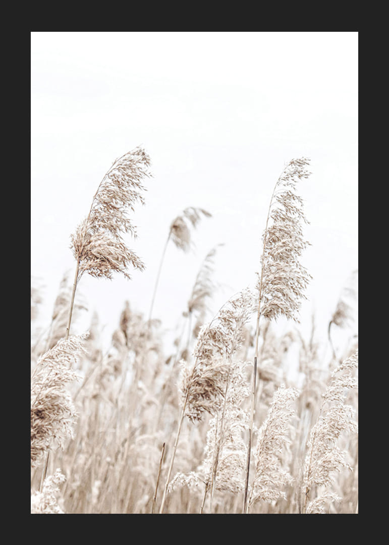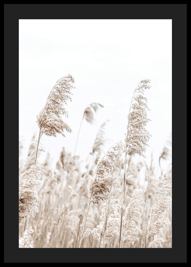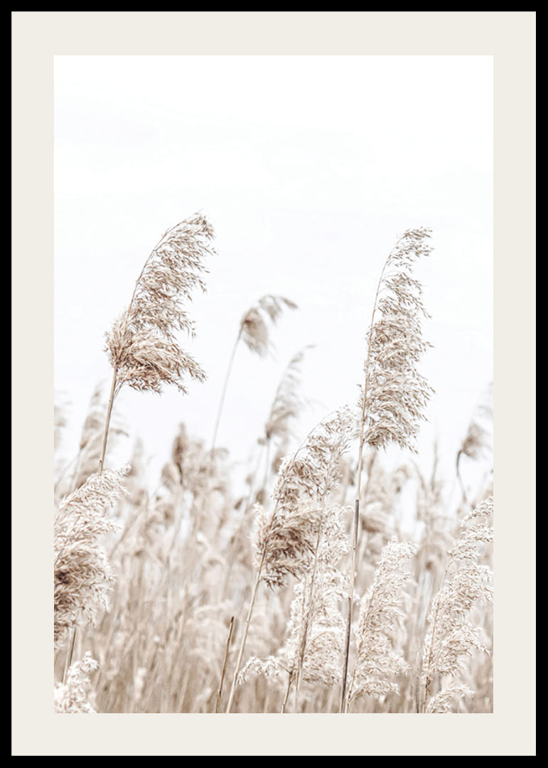 Pramene sušeného tŕstia sa vlnia vo vetre na pozadí svetlej a vzdušnej oblohy. Jemné béžové tóny dodávajú plagátu prirodzený a decentný výraz, zatiaľ čo jednoduchý motív vytvára príjemný pokoj. Tento plagát sa hodí do miestností, kde je žiaduci pokojný prírodný pocit, a dopĺňa škandinávsky interiérový dizajn.