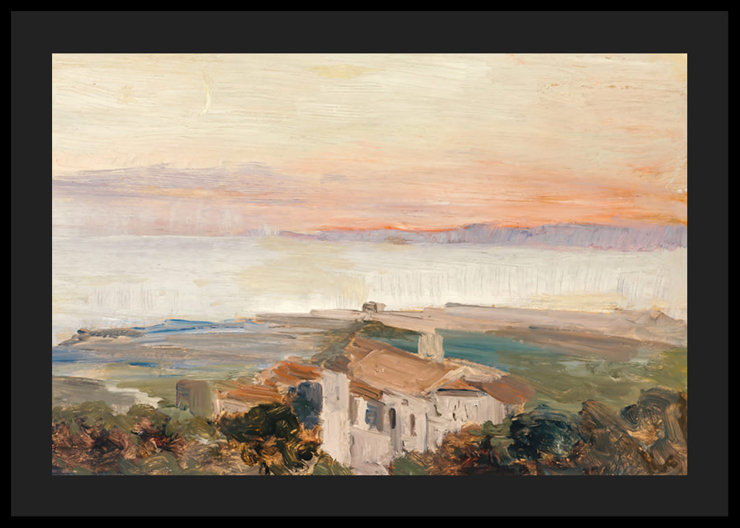 Sunset With Quarter Moon And Farmhouse By Edward Mitchell Bannister Plagát