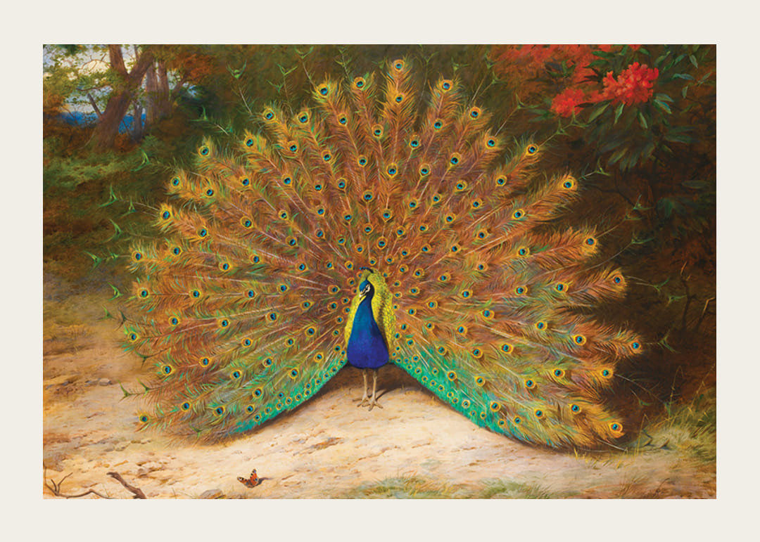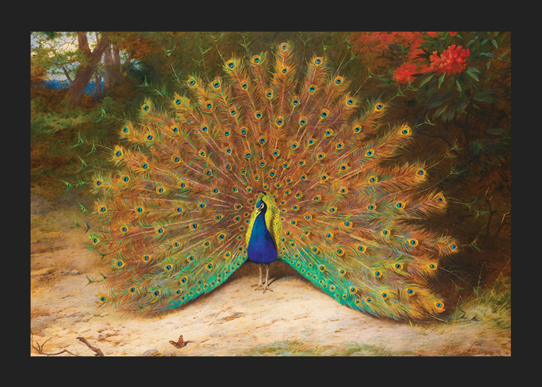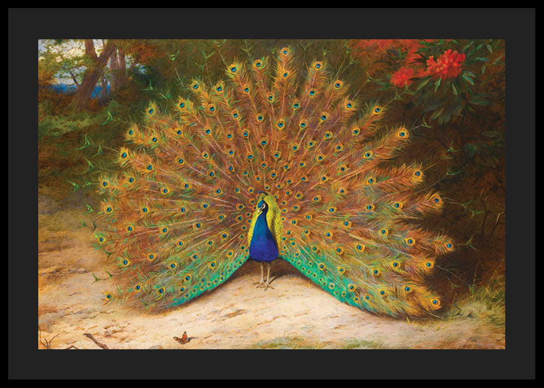 Peacock And Peacock Butterfly By Archibald Thorburn