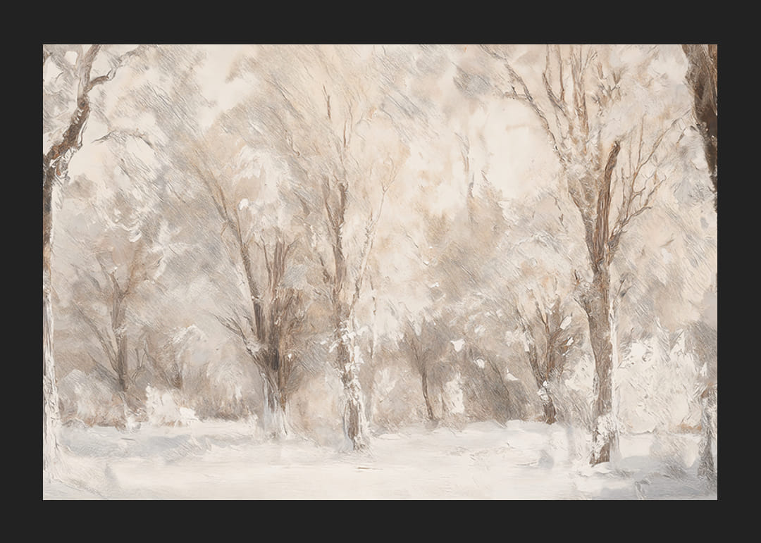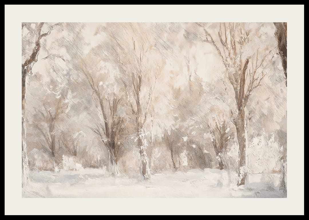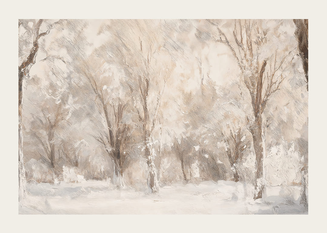 Vytvorte pokoj a harmóniu vo svojom dome s týmto plagátom, ktorý zachytáva ticho prírody v zasneženej zimnej krajine. Jemné tóny a mrazivé stromy vyjadrujú pocit nadčasovej elegancie a snovej krásy. Ideálne ako dekoratívny detail na vytvorenie relaxačnej atmosféry alebo ako darček pre niekoho, kto oceňuje kúzlo zimy. Pokojná pocta pokoju prírody