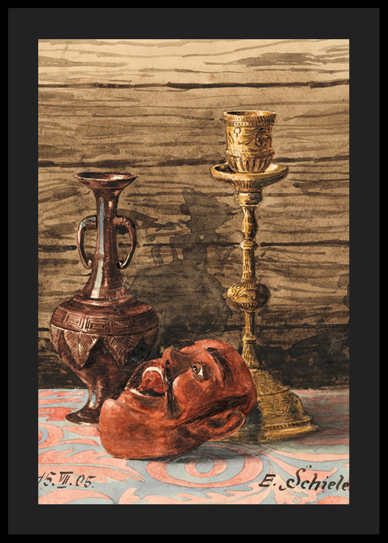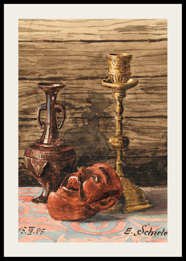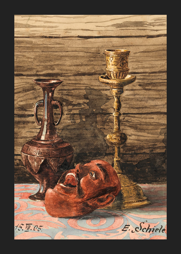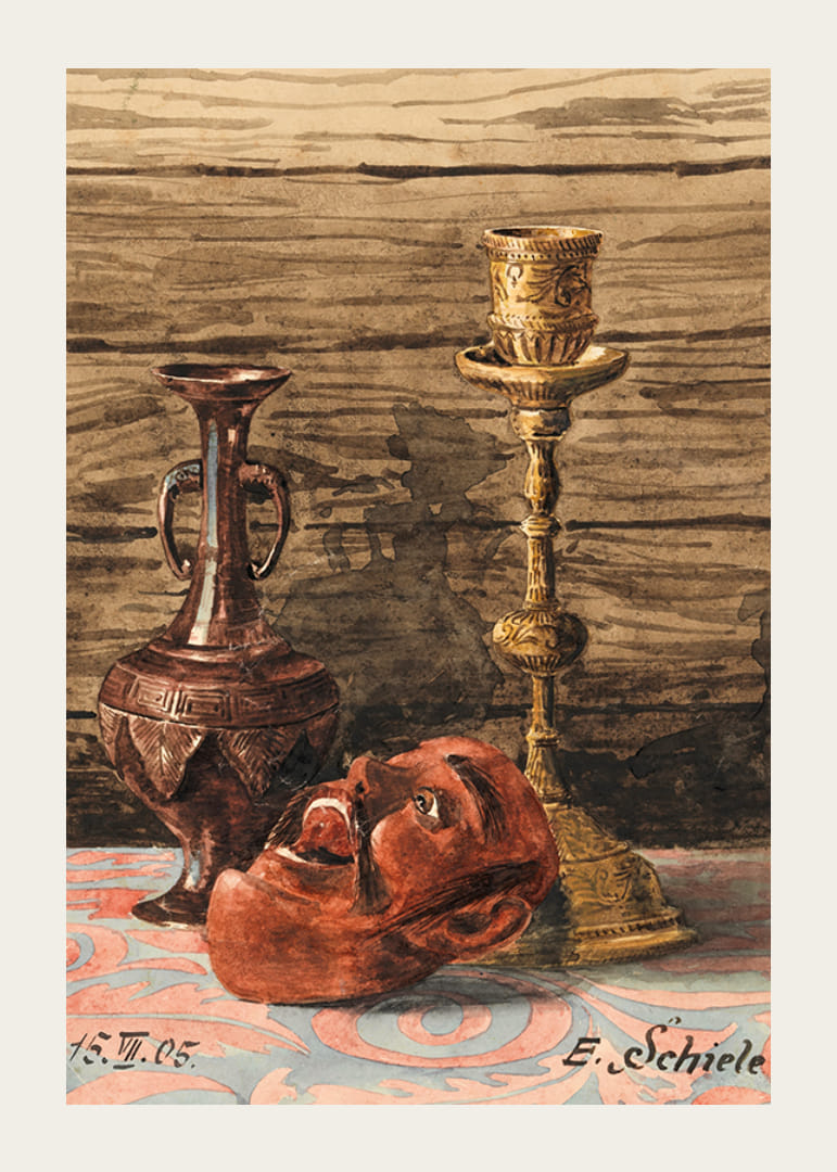 Stillleben Mit Kerzenleuchter, Vase Und Maske By Egon Schiele
