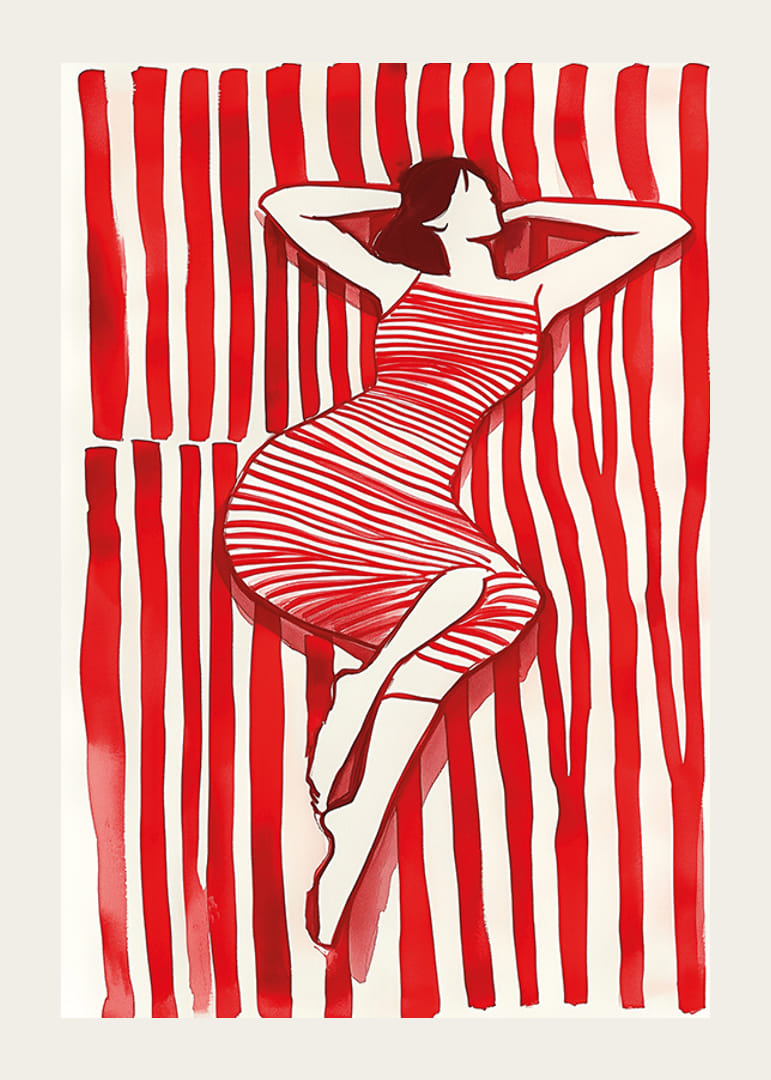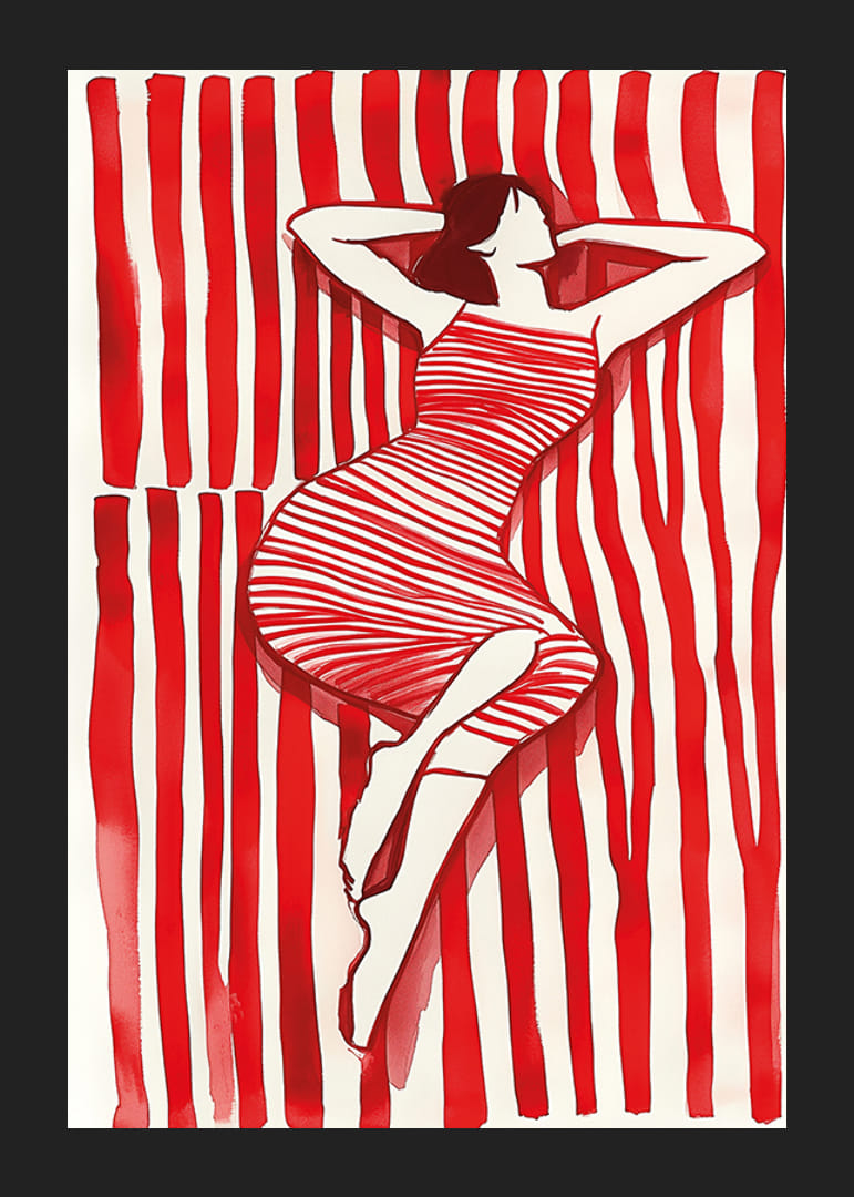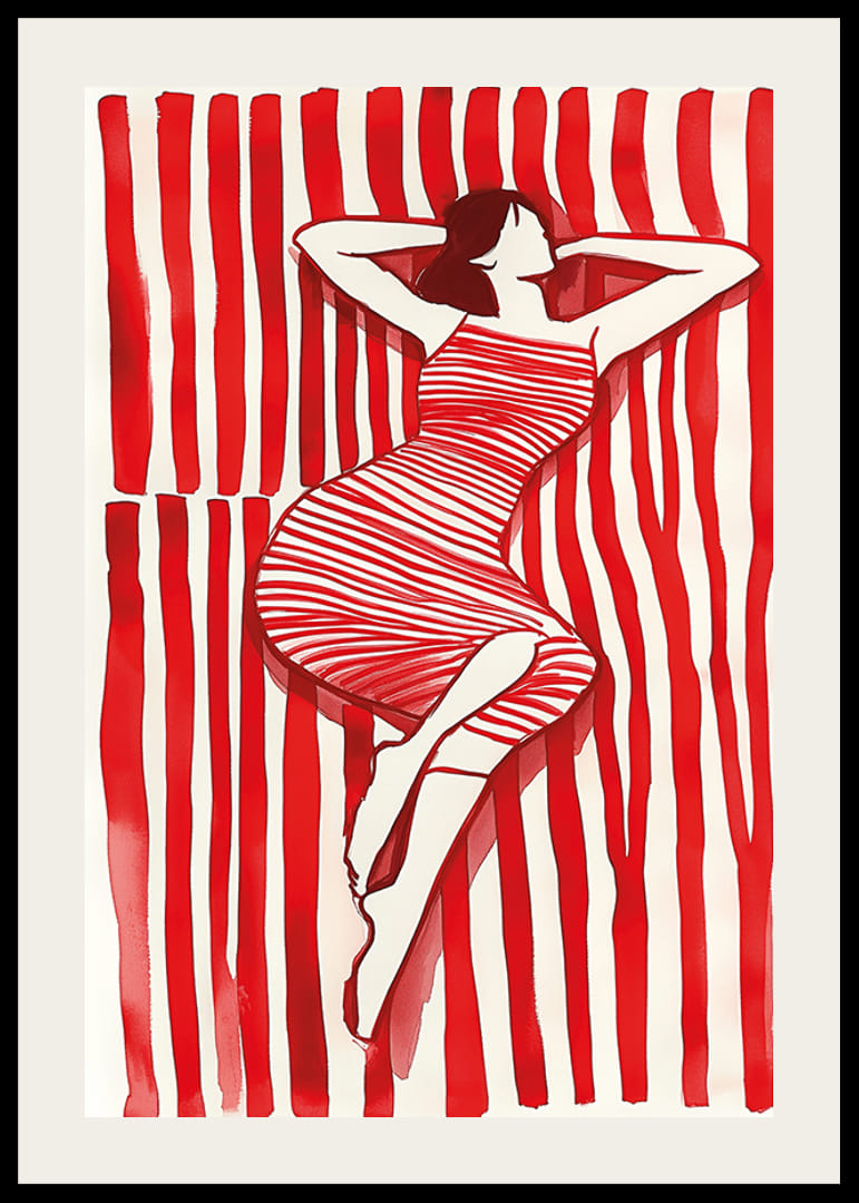Objavte očarujúci svet, kde sa červené a biele čiary spájajú v odvážnom, emocionálnom tanci. Štýlový sifón harmonicky spočíva medzi kontrastnými pruhmi a vytvára ilúziu pohybu a nehybnosti. Tento plagát bude štýlovým a energickým doplnkom vašej izby.